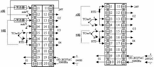 B路:標準信號、熱電偶或熱電阻輸入 B路:熱電偶或熱電阻輸入