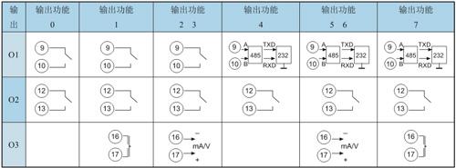 通訊/打印(O1)+控制輸出(O2)+(1~5)V變送輸出(O3) |
