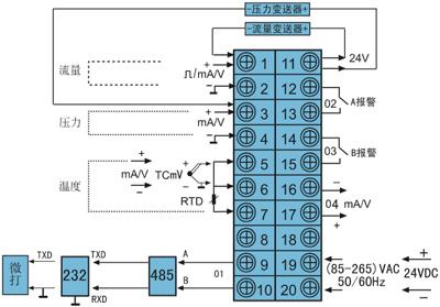 通訊/打印(O1)+ 報警(O2)+ 報警(O3)+(4~20)mA 變送輸出(O4) |