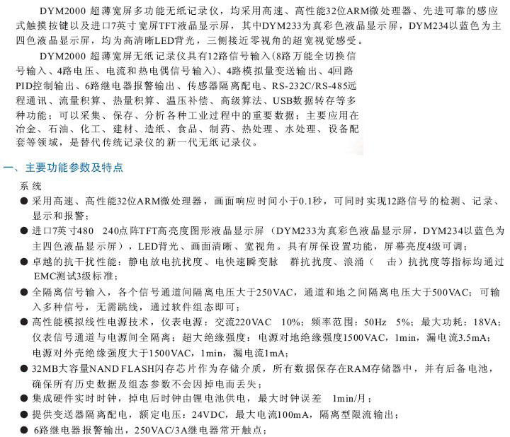 • 產品名稱:DYM2000超薄寬屏無紙記錄儀