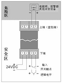 三、DYR系列卡裝開關量輸出隔離安全柵接線圖