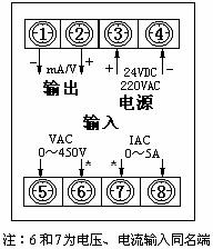 1. 當測量有功功率或功率因數(shù)時,要注意6和7端子為電壓信號和電流信號的同名端,如出現(xiàn)對純阻性負載時功率或功率因數(shù)顯示為負值,應將電壓信號2個接入端或電流信號2個接入端對調(diào)。