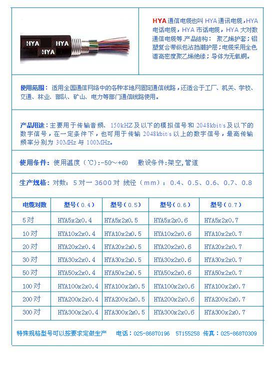 - 產(chǎn)品名稱:HYA通信電纜