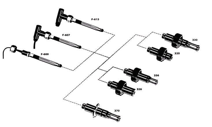 F615要另外選配電纜,F(xiàn)607和F600自帶2米電纜和BNC接頭。特殊長度和接頭請在訂貨時指明。