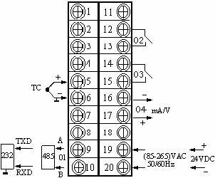 通訊(01)+報(bào)警(02)+(4~20)mA變送輸出(04) |