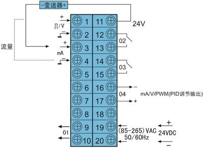 DY2000流量積算帶PID調(diào)節(jié)控制數(shù)字顯示儀表接線圖