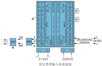 *本儀表的以下功能只能選擇其中一項:變送輸出;RS232通訊;RS485通訊;帶微型打印機通訊接口。