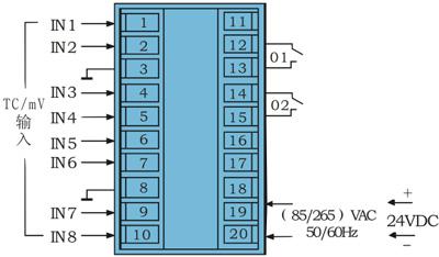 4. 8路巡檢儀表接線圖—(48×96×112) mm和(96×48×112) mm