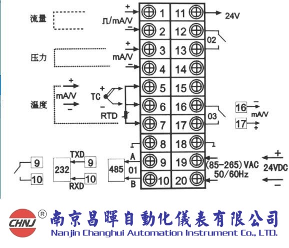 通訊/打印(O1)+控制輸出(O2)+(4~20)mA變送輸出(O3) |