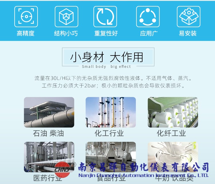 微小流量流量計是一種采用渦輪原理設計專門測量微小流量的專用流量計,它具有高的精度,特別是在高溫和高壓的條件下也是如此由于靈巧的結構設計,在工作時不會形成沉淀,以儀表的工作完成是潔凈”的 。